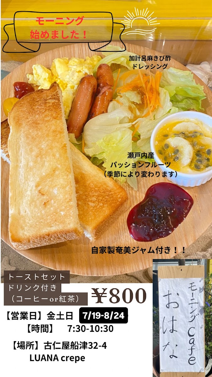 Welcome to LUANA Crepe, a delightful cafe nestled in the picturesque landscape of Setouchi, Kagoshima. This charming little crepe shop is more than just a place to satisfy your sweet tooth; it's an experience in itself! Known for its focus on fresh, local ingredients, LUANA Crepe delivers a menu that highlights seasonal specialties, ensuring that each visit offers something new and exciting.