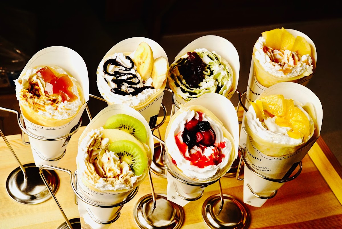 LUANA Crepe is celebrated for its exceptional crepes that boast a uniquely chewy texture and a variety of delectable fillings. Seasonal offerings like the tankan (たんかん) crepe are a must-try, featuring the sweet and tangy tangkan citrus fruit, expertly wrapped in soft, tender crepe dough. Customers rave about this delightful combination, praising the freshness and sweetness of the fillings. One excited patron says, “The mochi-like dough paired with the fresh, sweet tankan was just heavenly!”